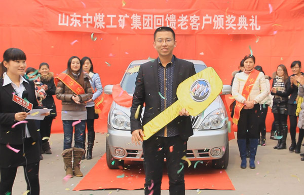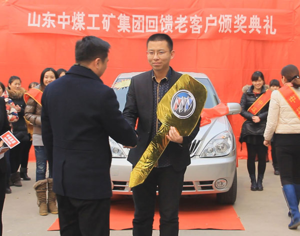 2月3日上午,山東中煤集團“2015年回饋客戶積分返利”抽獎活動送出首輛汽車大獎——一輛別克商務汽車,來自東泰機械的張總成為積分讓利抽獎活動首位大獎獲得者。
